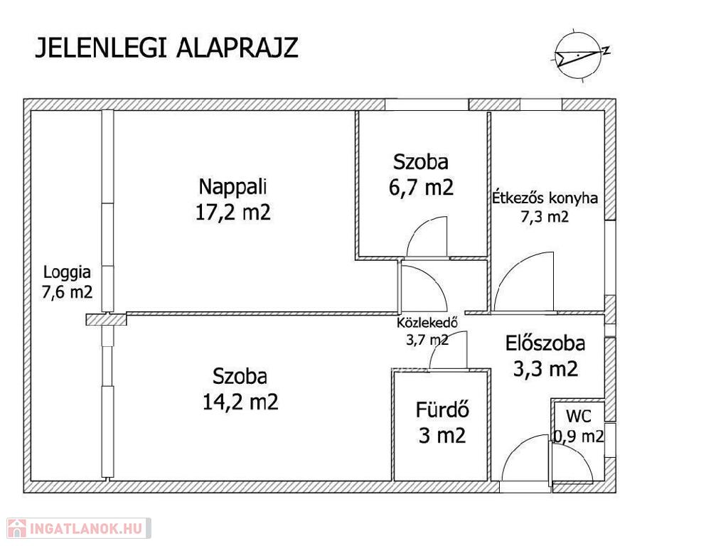 Az 57 nm-es lakás jelenleg is JÓ beosztású.