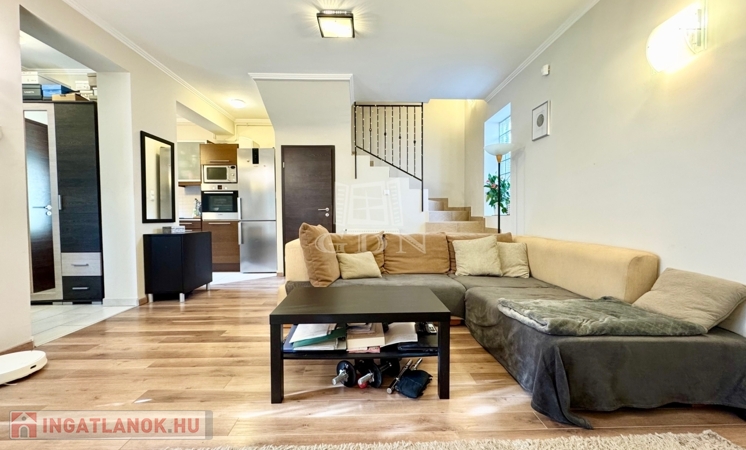 III. kerületben, Csillaghegyen, kertvárosi környezetben, kiváló közlekedés és ellátottság mellett, CSENDES aszfaltozott mellékutcában, 2011-ben épült, 4 lakásból álló sorházban, saját tulajdonú 102 nm-es intim kerttel, valamint dupla terasszal rendelkező (8+5 nm), 2 szintes, 70 nm-es lakóterületű, kiváló elosztású, nappali + 2 hálószobás, ablakos konyhás, kamrás, dupla wc-s, napos-világos D-NY-i fekvésű, alacsony fenntartású, kombinált gázcirkó fűtésű, egyedi mérésű, újszerű állapotú, klimatizált, riasztórendszerrel felszerelt, tehermentes, rugalmasan birtokba vehető, önálló helyrajzi számmal rendelkező sorházi lakás, beépített, gépesített konyhával, fedett felszíni gépkocsibeállóval, 6 nm-es kerti tárolóval, gondozott kerttel, kulturált lakóközösségű társasházban eladó.