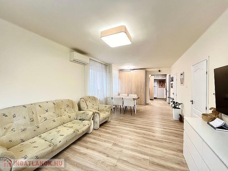 Eladásra kínálunk egy 69 m²-es, 2 + 1 fél szobás, első emeleti, erkélyes lakást, amely teljes körű felújításon esett át.