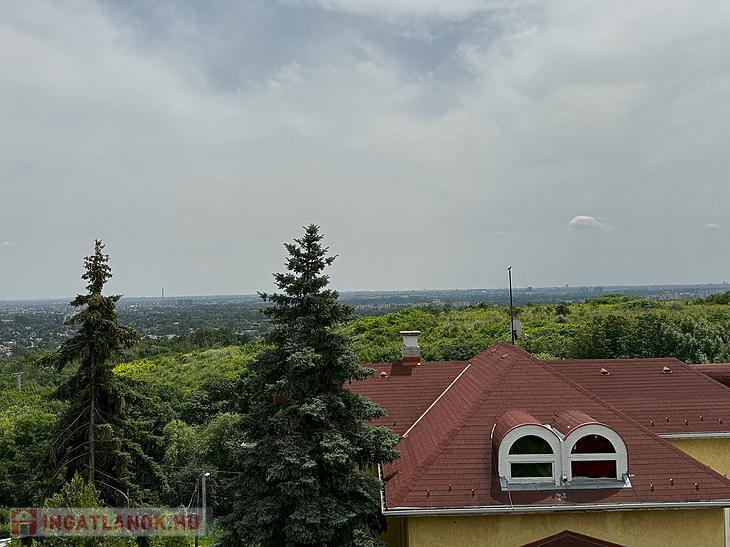 Csillaghegyen ELADÓ egy ÖRÖKPANORÁMÁS kertkapcsolatos lakás fedett kocsibeállóval.