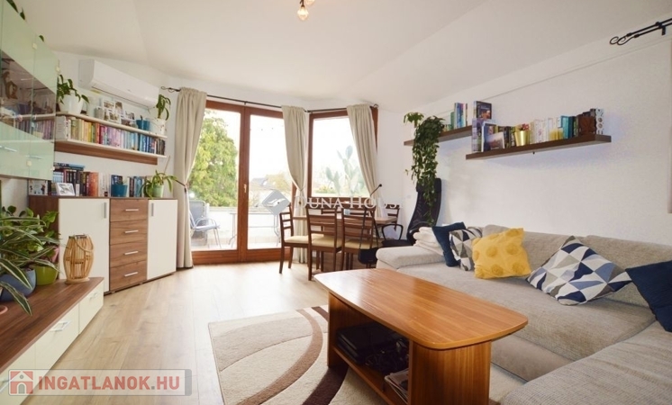 Frissített belső terek: A lakás 4 éve részleges esztétikai és műszaki felújítást kapott: új belső nyílászárók, modern konyhabútor, laminált padló és klímaberendezés gondoskodik a kényelemről.