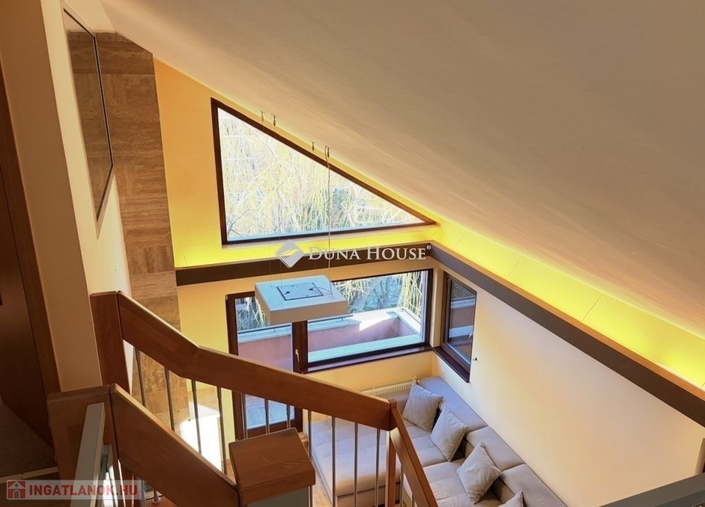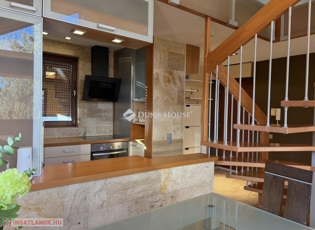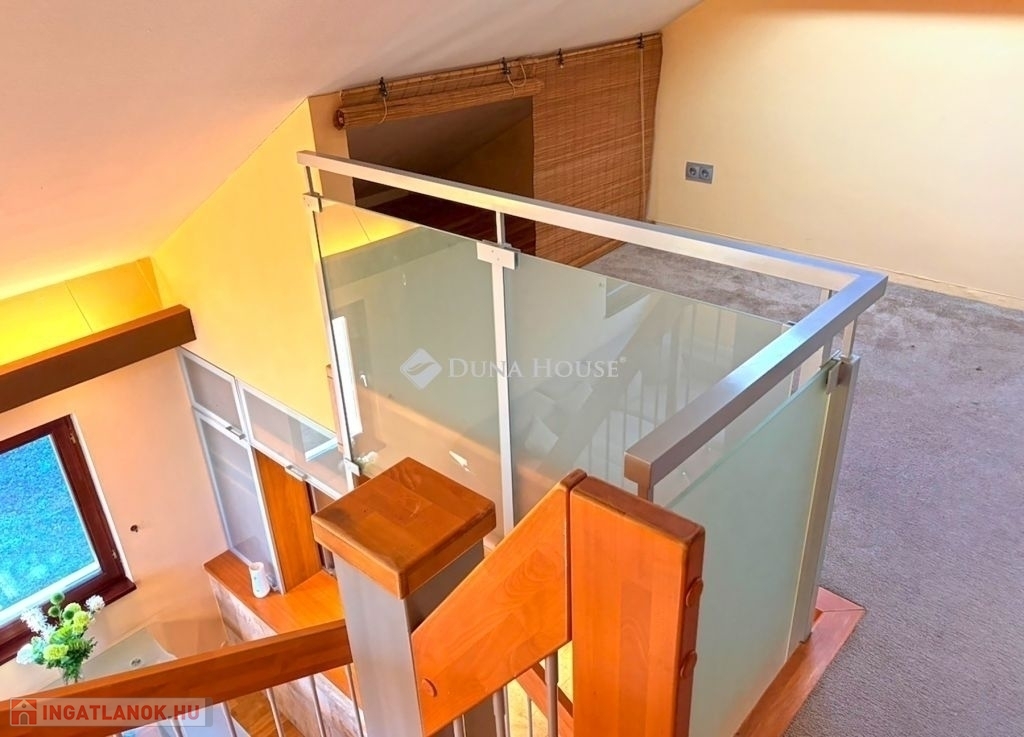 A nappali parkettás, míg a galéria szőnyegezett, ami meleg, otthonos érzetet biztosít.