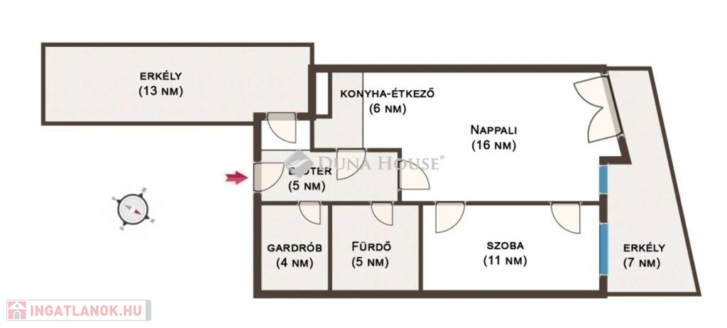 Alapterület: 47 m²+teraszok,
