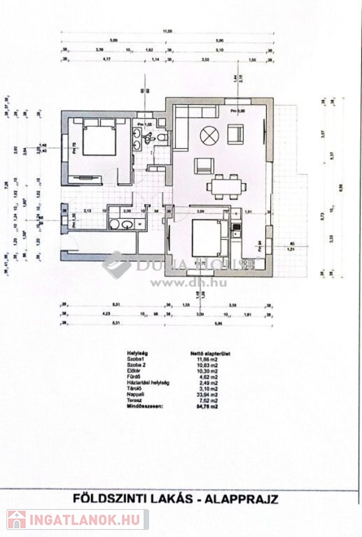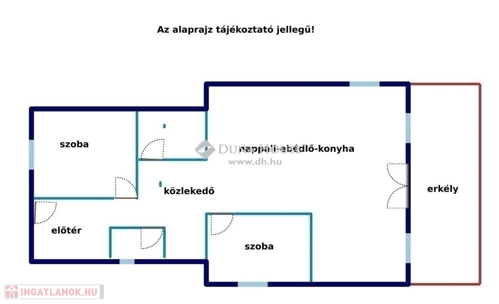 Az ingatlan az alábbi helyiségekből áll: panorámás nappali + konyha, 2 szoba, előszoba, fürdő+wc, lépcsőtér, erkély, háztartási helyiség, tároló.