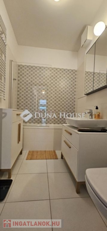 Waterfront lakóparkban, III. kerület., akadálymentesített házban, eladó újépítésű, 3 szobás lakás saját terasszal és kertrésszel, első tulajdonostól.Eladásra kínálunk egy 75 nm-es, újépítésű lakást, amelyhez 11 nm-es terasz és a teraszról nyíló 5 nm-es saját kertrész tartozik. A lakás elrendezése: tágas, amerikai konyhás nappali étkezővel (34 nm), 2 hálószoba (13 nm + 12 nm), modern fürdőszoba káddal és WC-vel, külön WC. A konyha teljesen gépesített (beépített mosogatógép, hűtő, sütő), a lakás részben bútorozva eladó (étkezőasztal, székek, kanapé, szekrény). Minden szobában redőny található (távirányítós), a mennyezeti hűtés-fűtést pedig egy klíma egészíti ki.Lokáció: az épület közvetlenül a Duna partján helyezkedik el. A belváros mindössze 12 perc alatt elérhető. Kerékpárutak vezetnek a belvárosba, Óbudai-szigetre, Szentendrére és a Római-partra.A közlekedés kiváló: busz és HÉV 8 - 10 perc sétára.A lakópark szolgáltatásai és extrái: hamarosan átadásra kerülő gyalogoshíd a Hajógyári-szigetre, kávézók, pékségek, fitneszterem, Óbuda főtere pár perc sétára, közösségi Wi-Fi, elektromosautó-töltőállomás előkészítés, mozgásérzékelős világítás, napelemes padok telefontöltési lehetőséggel.Biztonságos mélygarázs bérelhető vagy vásárolható (a lakáshoz nem tartozik).Ez a modern, világos otthon ideális választás fiatal pároknak vagy családoknak, akik szeretnének közel lenni a belvároshoz, ugyanakkor zöld, vízparti környezetben élni.Ha hitelre van szüksége a tanácsadóink díjmentesen a legjobb banki ajánlatokkal álnak rendelkezésre.Amennyiben megtekintené, várom hívását!