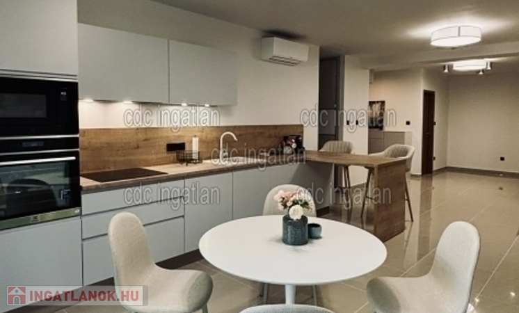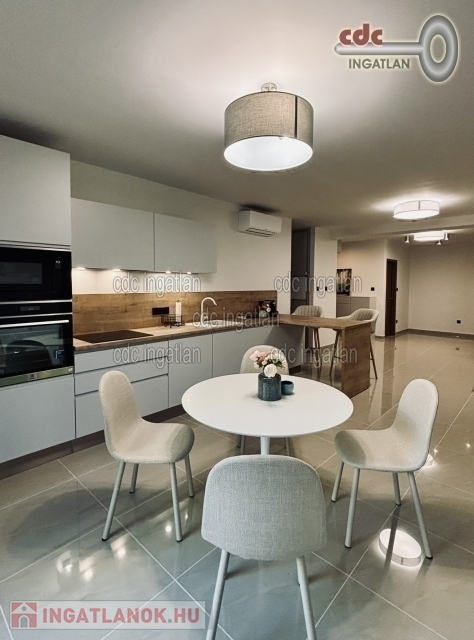 Főbb jellemzők: 1 tágas nappali–étkező–konyha, 2 kényelmes hálószoba + külön gardróbszoba, fürdőszoba WC-vel + külön WC, beépített, vadonatúj, felsőkategóriás konyhabútor és gépek.