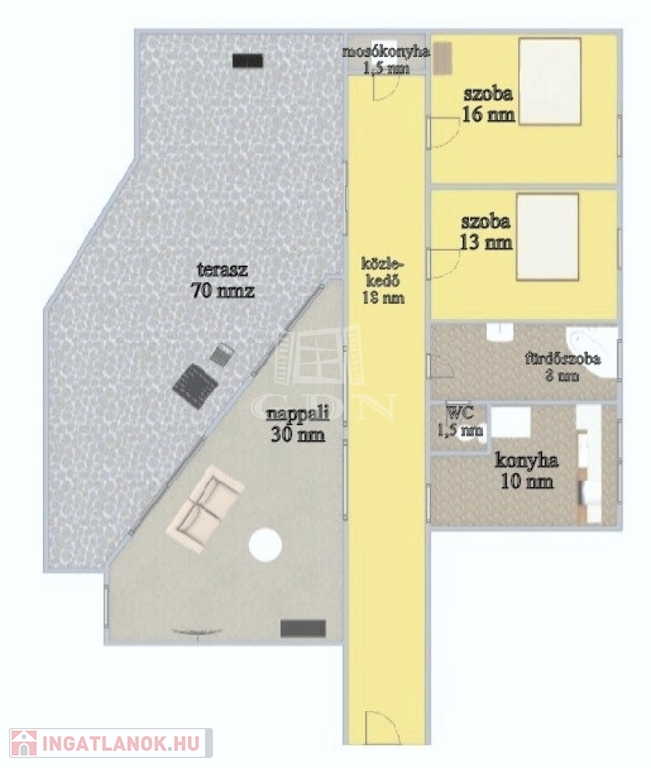 A teremgarázs szinten található egy 70 négyzetméteres, saját, zárható, tároló helyiség, melynek ára további 5 M Ft.