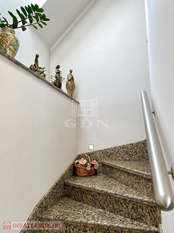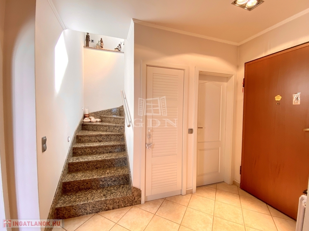 2001-ben épült 4 lakásos, gyönyörű állapotú házban, felső emeleti, belső kétszintes, nettó 135 m2-es, nappali + 2 hálószobás lakás eladó!