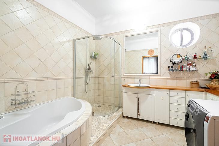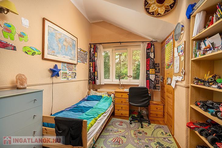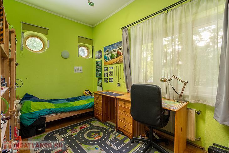 Az emeleten további két szoba kapott helyet, külön konyhával és fürdőszobával, így az emeleti rész akár önálló lakrészként is használható.