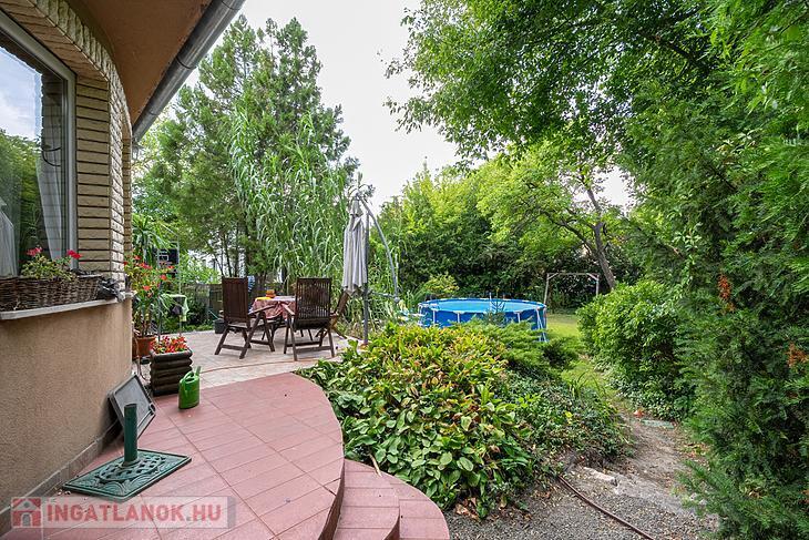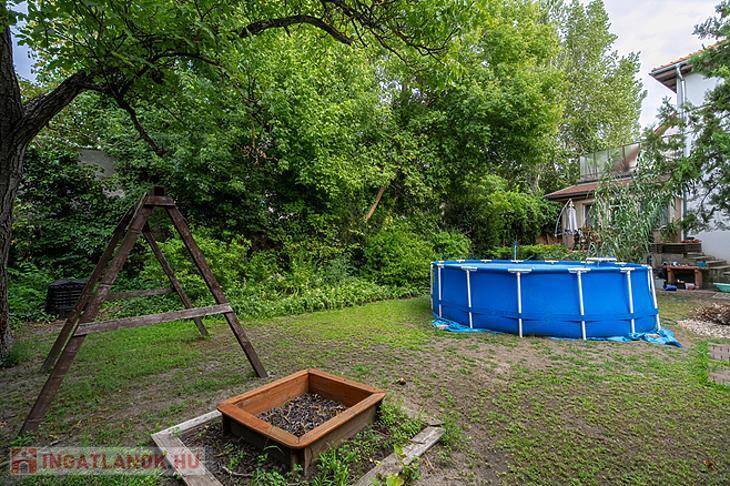 A kellemes méretű kert számos lehetőséget kínál: ideális lehet pihenésre, gyermekeknek játszótér kialakítására vagy akár egy teraszos kerti kiülő megvalósítására is