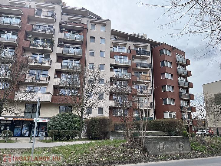 A lakás egy 2005-ös tégla építésű 8 emeletes liftes társasházban található az első emeleten.