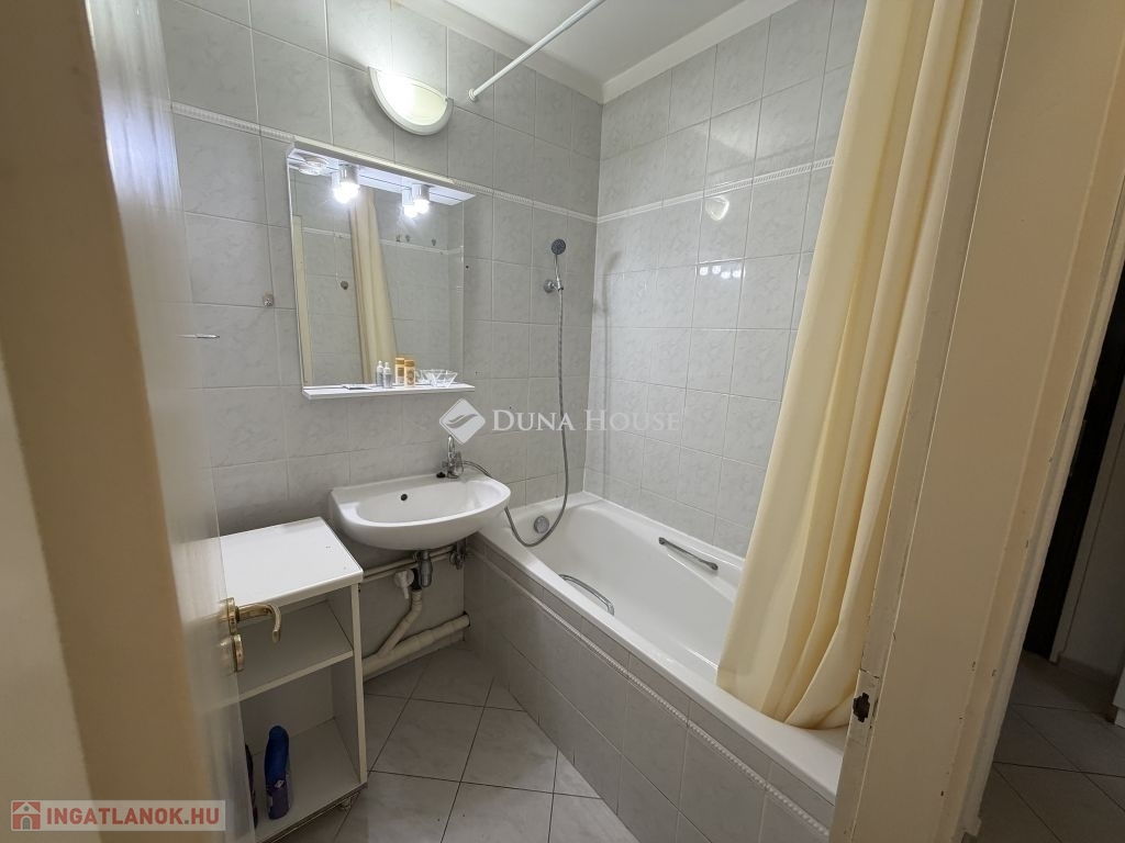 A fürdő és a WC egy helyiségben található.