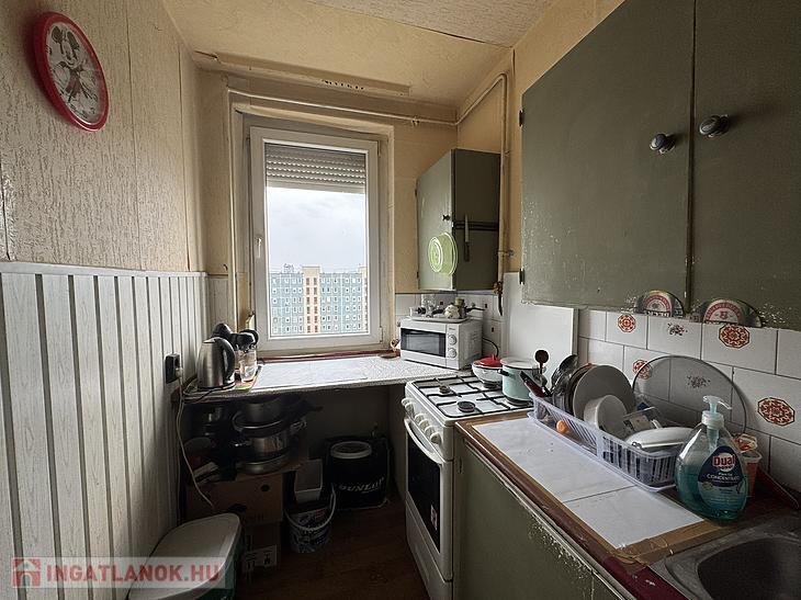 Az ingatlan egy 10 emeletes liftes panelház 10. emeletén helyezkedik el. A magas emeletnek és a déli fekvésének köszönhetően egésznap világos.