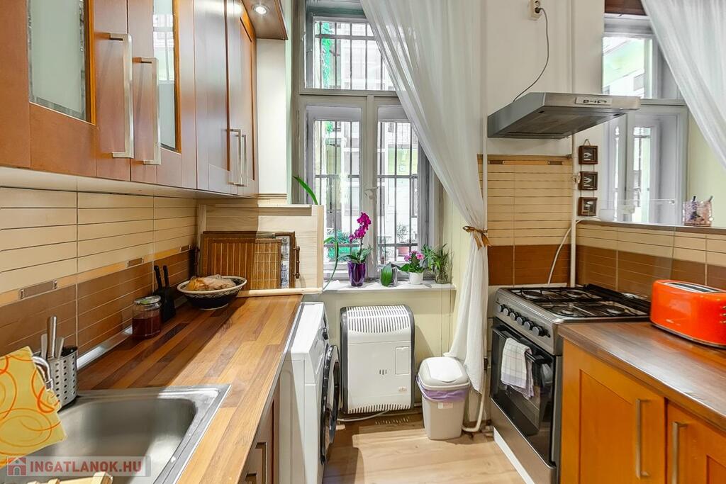 Az előszobában hatalmas gardróbszekrény van, de további tárolási lehetőséget szolgál a lakáshoz tartozó pince ami száraz nem dohos.