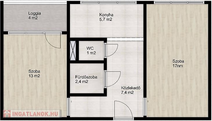 Eladó Óbudán egy 48 nm-es, 2 szobás panellakás beépített loggiával.