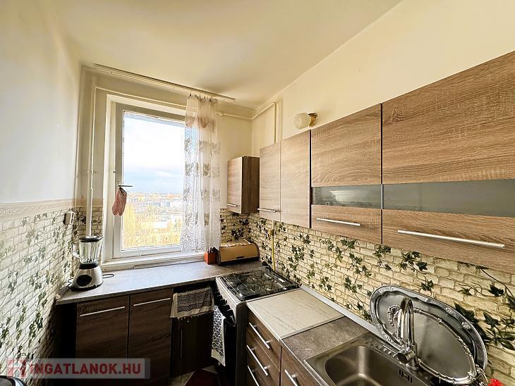 A konyhája ablakos, illetve új konyhabútorok lettek beépítve.