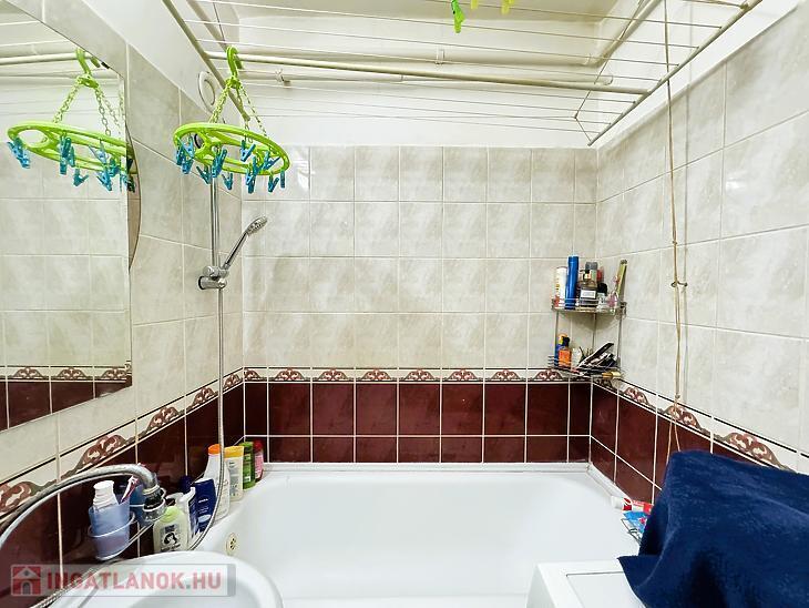 A fürdőszobában a burkolat cserélve lett és káddal rendelkezik, a WC egy külön helyiségben található.