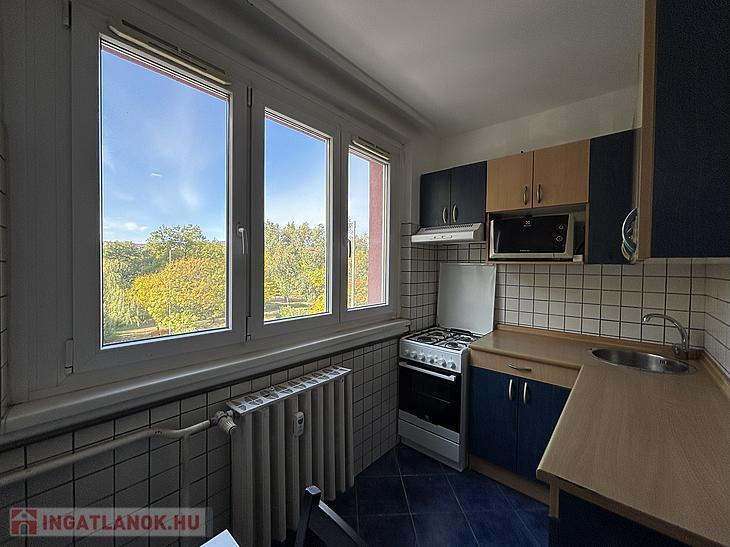 A konyhában cserélt, megkímélt állapotú konyhabútor található, páraelszívóval és új gáztűzhellyel felszerelve.
