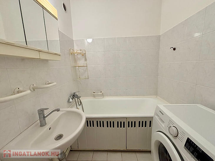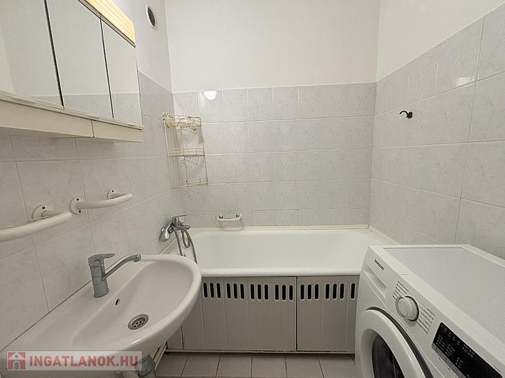 A fürdőszoba és a Wc kulturált, jó állapotú burkolatokkal rendelkezik, a fürdőben egy öntöttvaskád található.
