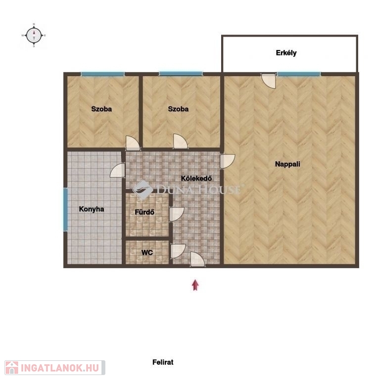 A lakás nappali + 2 szobás. A tágas nappaliból egy erkélyre léphetünk, ahonnan a parkra nyílik szép kilátás, és galambháló biztosítja a nyugalmat.