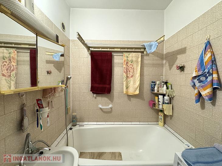 A fürdőszobában öntött vaskád található, a wc pedig egy külön helyiségben helyezkedik el.