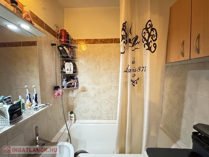 A fürdőszobában a burkolat cserélve lett és káddal rendelkezik, a WC egy külön helyiségben található.