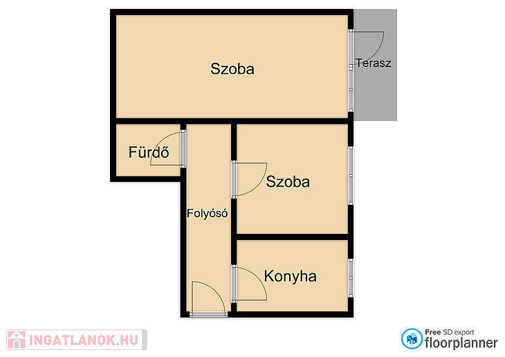 Az ingatlan 2 szobás elosztású előszobával, fürdővel és konyhával.