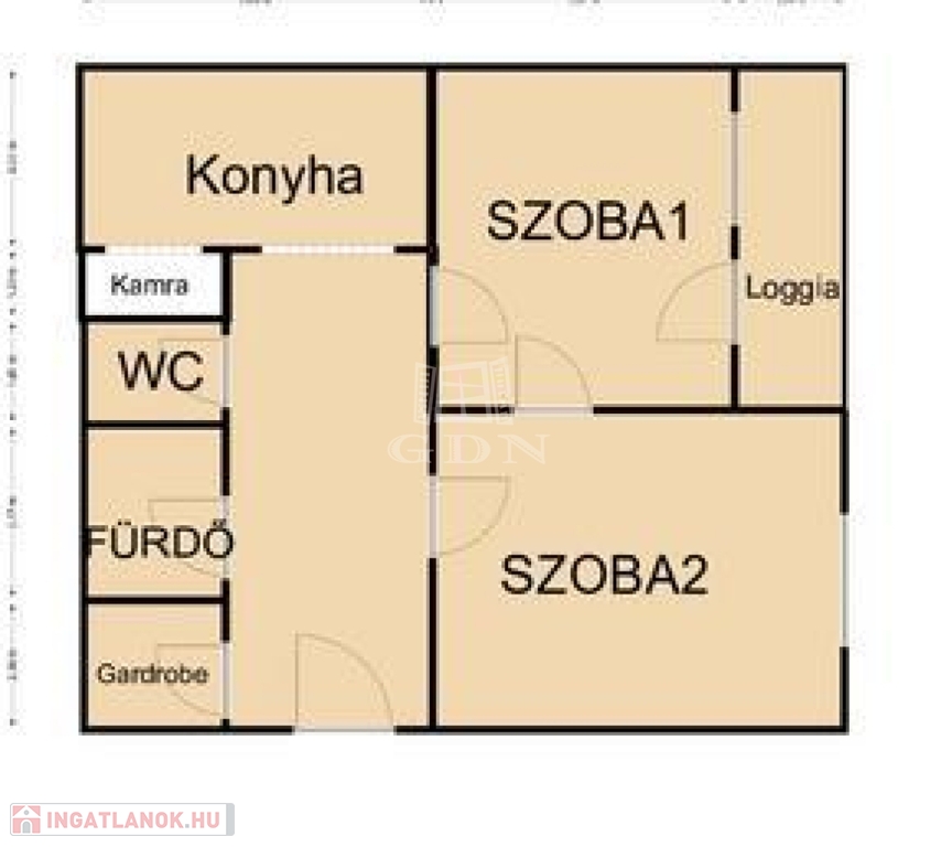 A lakás 2 szobás, erkélyes, külön WC és zuhanyzós fürdőszoba, konyha kis kamráva és háztartási helyiség elosztású.