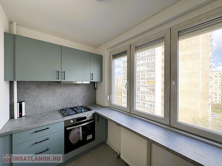 A világos, ablakos konyhába új konyhabútorok kerültek beépítésre.