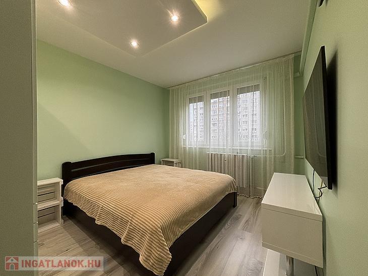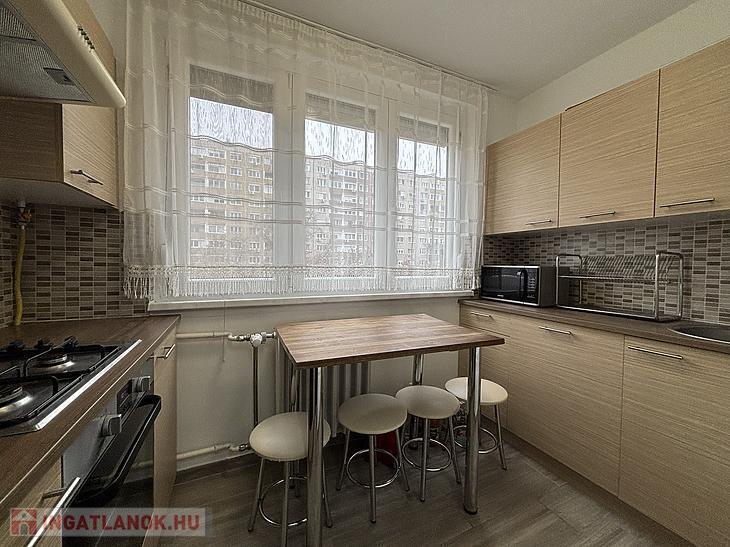 A lakás egy 10 emeletes panelház 3. emeletén található, nyugati fekvésének köszönhetően világos, délutánonként kifejezetten kellemes fényviszonyokkal.