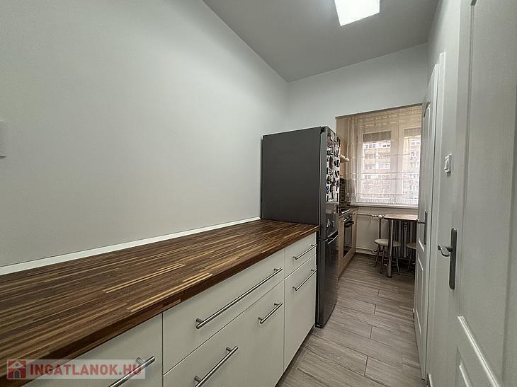 A konyha az ingatlan egyik legerősebb pontja. Új burkolatok és új bútorzat került beépítésre, a gépesítés pedig felsőkategóriás: