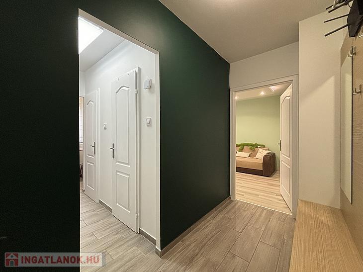 A felújítás nem csak esztétikai, hanem teljes műszaki megújulást is jelent. A teljes villamoshálózat cseréje megtörtént: új vezetékek, biztosítékok, kapcsolók és konnektorok kerültek beépítésre. A falak minden helyiségben gletteltek és festettek, ráadásul mindössze két hónapja, mosható festékkel, így az ingatlan azonnal költözhető állapotban van.