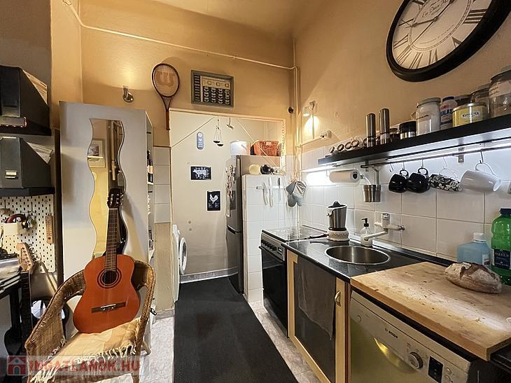 A konyha mosogatógéppel felszerelt, illetve a mosógép ki-és beállása is ebben a helyiségben lett kialakítva.