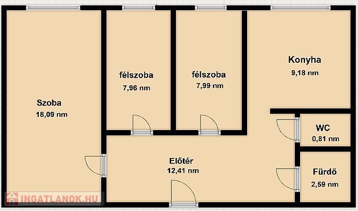 A szobákban faparketta, a többi helyiségben pedig járólap található.