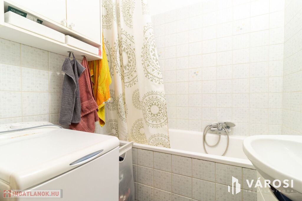 A lakás világos, praktikus elosztású: a szobákban laminált padló, míg a közlekedőben, konyhában, fürdőben és WC-ben hidegburkolat található.