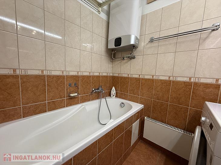 A fürdőszobában kád van, a mosógép ki-és beállása ebben a helyiségben került kialakításra.