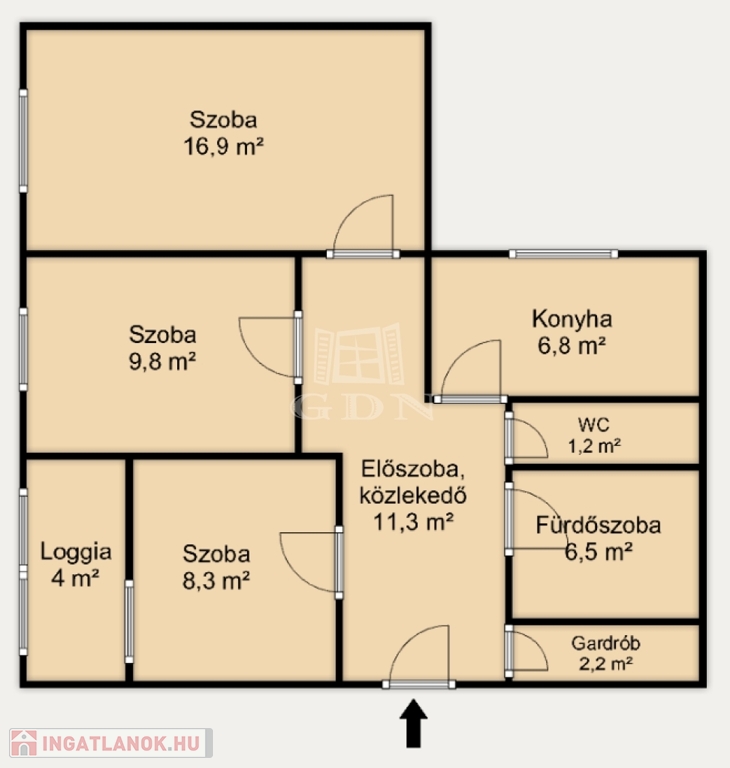 - ingatlan három külön nyíló szobával rendelkezik