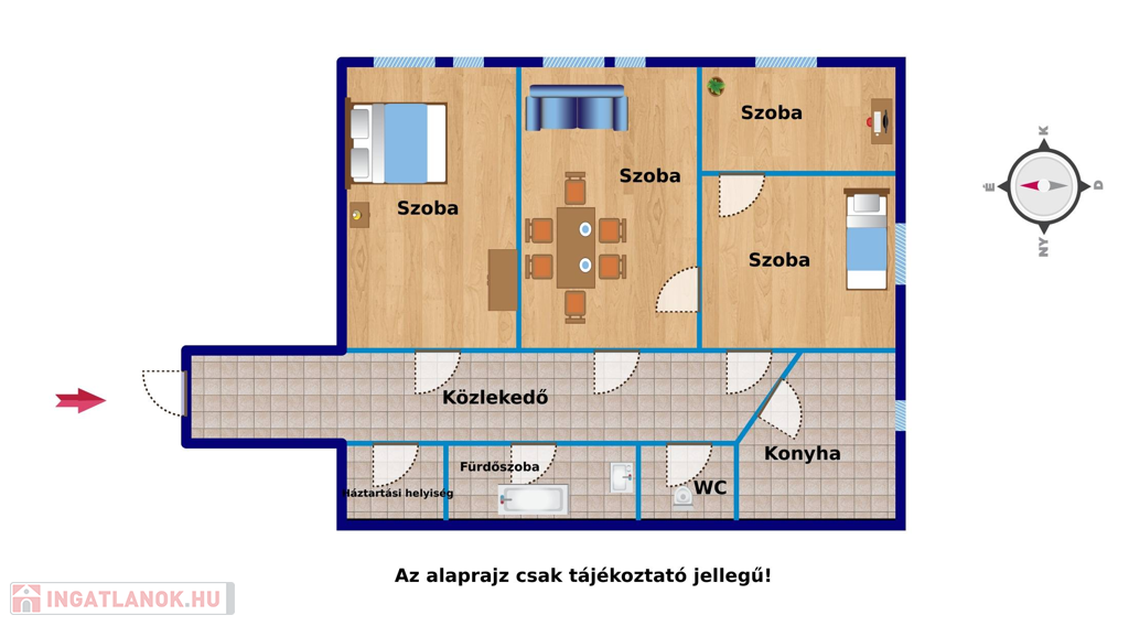 Tágas nappali és hálószoba, valamint 2 kisebb szoba – ideális elosztás akár családosoknak, akár bérbeadásra keresőknek.