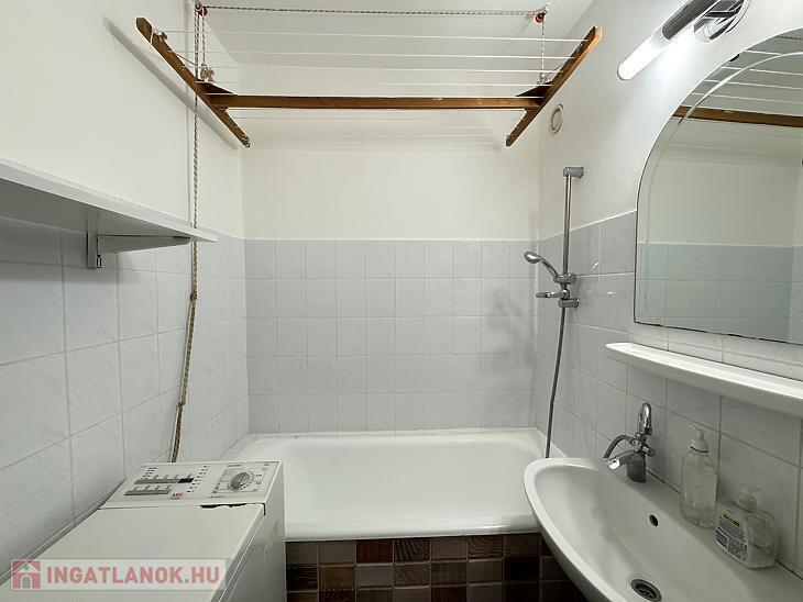 A fürdőszoba káddal rendelkezik, a WC egy külön helyiségben kapott helyet.