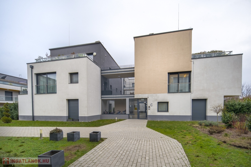 2022-ben épült, 15 lakásos társasházban, a Csillaghegy Residenceben 50 m2 alapterületű, plusz 9,5 m2-es terasszal rendelkező, nyugati fekvésű, nappali 2 hálós, 2 fürdőszobás, újszerű állapotban lévő lakás eladó. Minden rezsi egyedi mérésű: a hőszivattyús rendszerrel működő mennyezeti hűtés-fűtés és a padlófűtés hőmennyiségmérővel mért, gáz nincs az épületekben. A konyha mosogatógéppel és hűtővel is felszerelt, a két fürdőszoba zuhanyzós és WC-s.