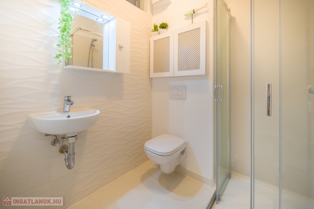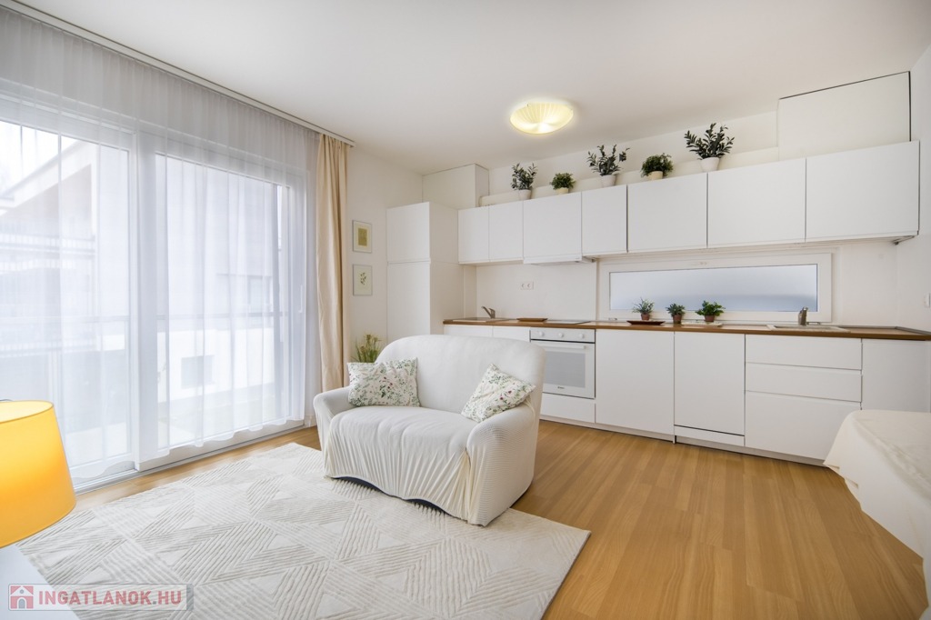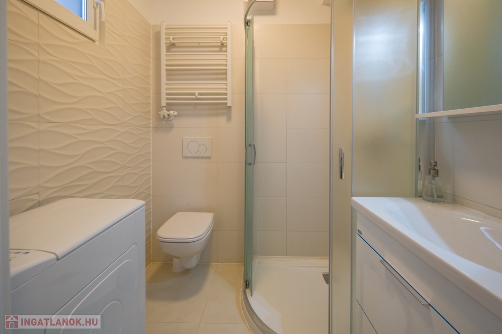 Az ingatlan újszerű állapotú, azonnal költözhető, a konyha gépesített (mosogatógép, hűtő).