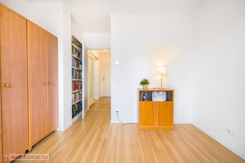 A lakás egyik legnagyobb előnye az átgondolt, ritkán elérhető elosztás: két külön nyíló hálószoba és két fürdőszoba, ami ebben a méretkategóriában kifejezetten különleges.