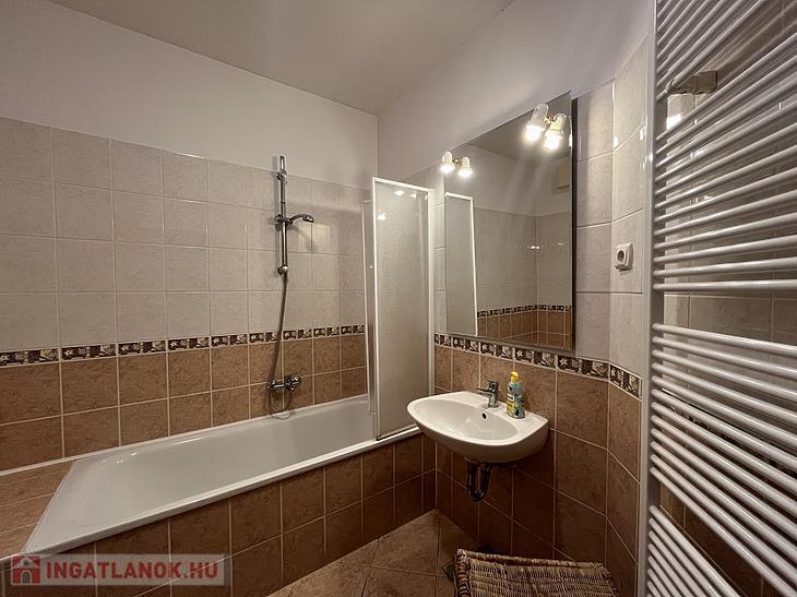 A fürdőszobában kád van, a mosógép ki-és beállása ebben a helyiségben került kialakításra.