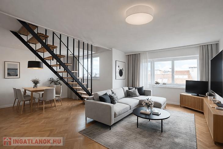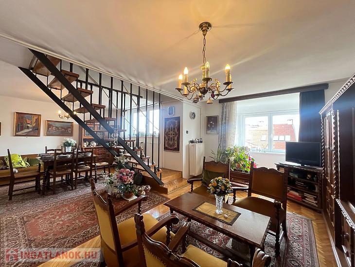 Eladó egy 88nm-es, belső két szintes jó elosztású 4 emeletes tégla építésű társasház 4. emeletén lévő1+2 félszobás lakás.