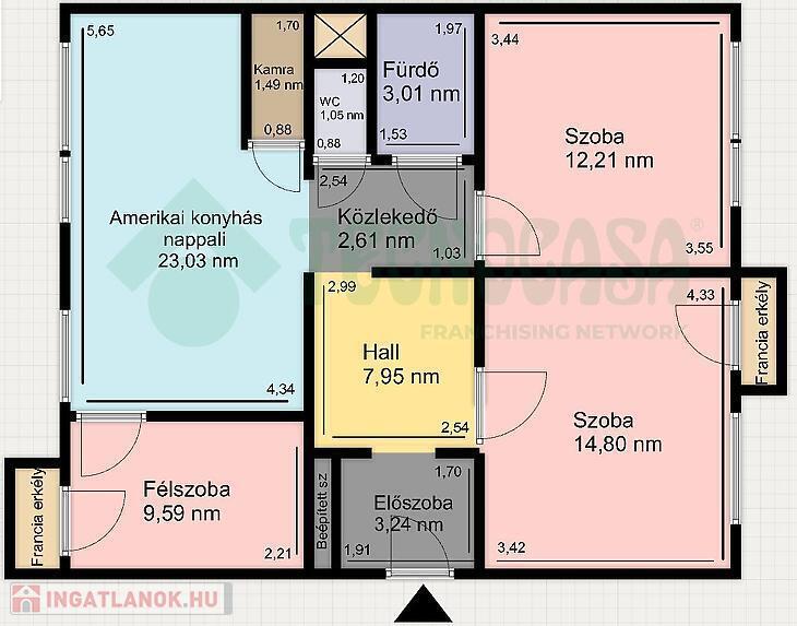 Káposztásmegyer I.-en, három emeletes cseréptetős társasház III. emeletén, 80nm-es, amerikai konyha + 2+1félszobás lakás eladó, két franciaerkéllyel. Az ingatlan közepes-jó állapotú, a nappali-konyha járólapos, a többi helyiség laminált parkettás. A nyílászárók műanyag thermo üvegesek, redőnyösek, részben szúnyoghálósok. A konyhabútort és a radiátorokat kicserélték, a fürdőszobát és a wc-t újra burkolták, új kádat szereltek be. A bejárati ajtó több ponton záródó biztonsági. A beépített bútorzat a vételár részét képezik. A környék ellátottsága kiváló, iskolák (Babits Mihály Gimnázium, Karinthy Frigyes Magyar- Angol Két Tanítási Nyelvű Általános Iskola), óvodák, sportolási lehetőségek (Jégpalota, Uszoda), számos bevásárlási lehetőségek elérhetőek. 14-es villamos és a 20E busz megállója pár perc sétára található, amellyel Újpest központ metrómegálló rövid időn belül elérhető! A hirdetésben szereplő adatok tájékoztató jellegűek!