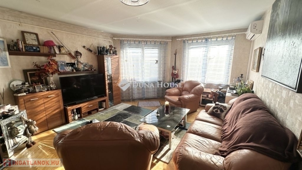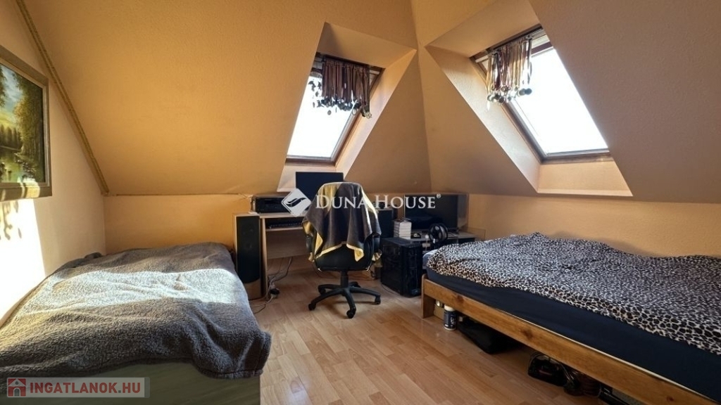 A helyiségek: 4 szoba, két fürdőszoba, külön WC, konyha+étkező, előtér, közlekedő és belső lépcső.