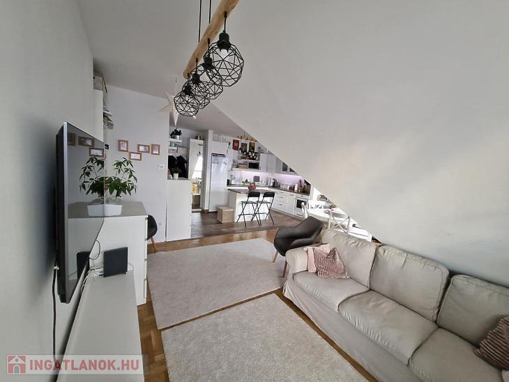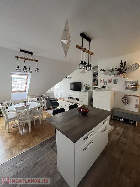 Az Újpesti-Piac közvetlen közelében, cseréptetős, újszerű társasházban, eladásra kínálunk, egy nettó 74 nm-es, amerikai konyhás nappali+3 hálószobás elrendezésű, 2 erkélyes, tetőtéri téglalakást.