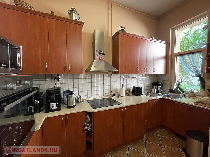 Újpesten, a piac közelében, frekventált, zöld fás utcában, 4 lakásos udvarban, eladásra kínálunk egy bruttó 210 nm-es, nettó 185 nm-es, belső kétszintes, 7 szobás, jó állapotú, téglalakást teraszkapcsolattal.