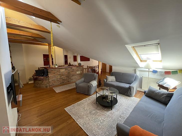 A tetőtérben 3 szoba, egy nappali, egy mini konyha, külön fürdőszoba és mellékhelyiség, gardrób, valamint egy kb. 8 nm-es terasz került kialakításra. Mindhárom szoba különnyíló, az egyikből közvetlenül egy kb. 10 nm-es gardrób helyiség nyílik.