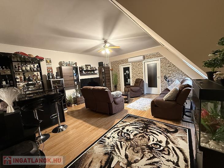 A lakásban a 2009-es éveknek megfelelő korszerűségű víz és villanyhálózat került kialakításra. Több ponton záródó, biztonsági bejárati ajtó, fa típusú beltéri ajtók, valamint redőnnyel felszerelt műanyag keretes, thermo üveges és sötétítővel felszerelt, fa típusú velux tetőtéri nyílászárók kerültek beépítésre. A szobákban laminált padlót helyeztek le, a többi helyiséget járólappal burkolták. Minden helyiségben lapradiátor található. A fűtést és a melegvíz ellátást kombi cirkókazán biztosítja, a fogyasztás elszámolás alapján is történhet. A nagyobb komfortérzet kialakítása érdekében a nappaliba egy hűtő-fűtő inverteres légkondicionáló berendezés is felszerelésre került.